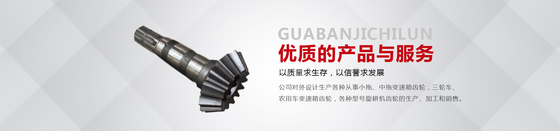 本廠位于省會(huì)東南60公里的全國(guó)重點(diǎn)鎮(zhèn)——大陸村鎮(zhèn)。本廠在市場(chǎng)內(nèi)設(shè)有銷售公司,經(jīng)銷工程機(jī)械;農(nóng)用拖拉機(jī);農(nóng)機(jī)具的整機(jī)和全車配件。市場(chǎng)緊靠308國(guó)道,距青銀高速寧晉路口14公里,交通十分方便。主要從事小拖、中拖變速箱齒輪,三輪車、農(nóng)用車變速箱齒輪,各種型號(hào)旋耕機(jī)齒輪、收獲機(jī)械變速箱齒輪的生產(chǎn)、加工和銷售。同時(shí)加工定做各種直齒輪,傘齒輪,斜齒輪,鏈輪,齒輪軸等機(jī)械產(chǎn)品。廠內(nèi)檢測(cè)手段齊全。十幾年來(lái)與河北、北京、山東、安徽、河南、吉林、陜西、山西、寧夏、黑龍江、遼寧等省市的企業(yè)建立了穩(wěn)固的業(yè)務(wù)關(guān)系。產(chǎn)品質(zhì)量穩(wěn)定、價(jià)格合理、供貨及時(shí)。